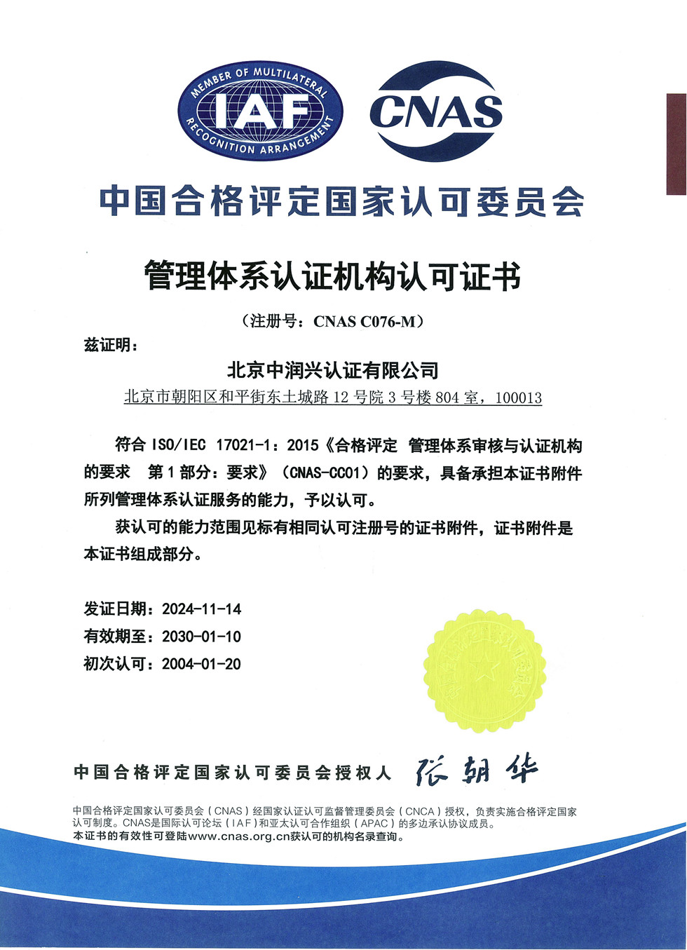 版權(quán)所有:CNAS管理體系認證機構(gòu)認可證書-資質(zhì)資格-北京中潤興認證有限公司 未經(jīng)同意請勿轉(zhuǎn)載